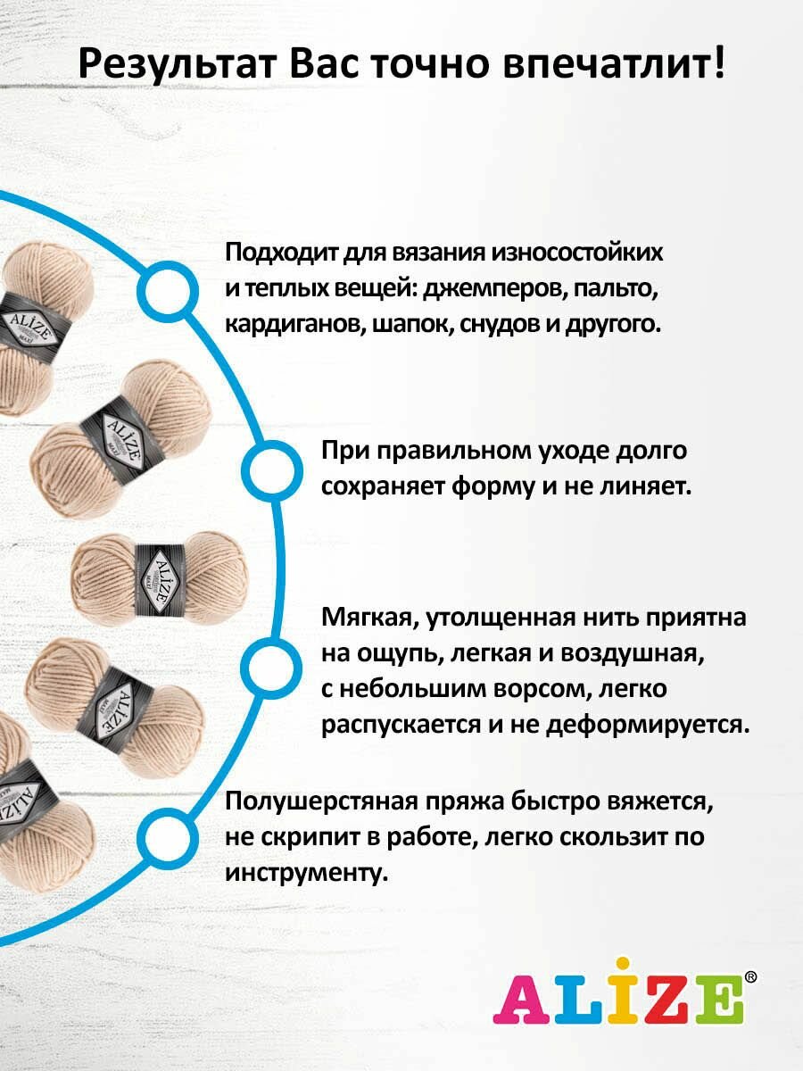 СохранитьПряжа ALIZE SUPERLANA MAXI, шампань - 310, 25% шерсть, 75% акрил, 5 мотков, 100 г., 100 м. интересное: