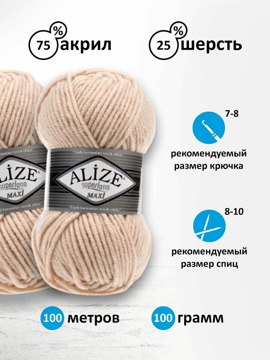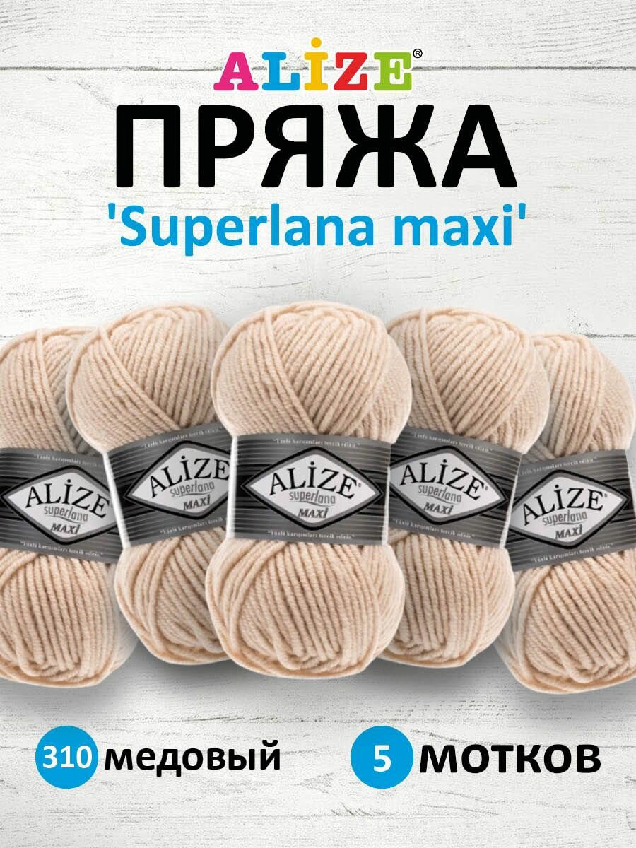 Купить Пряжа ALIZE SUPERLANA MAXI, шампань - 310, 25% шерсть, 75% акрил, 5 мотков, 100 г., 100 м.