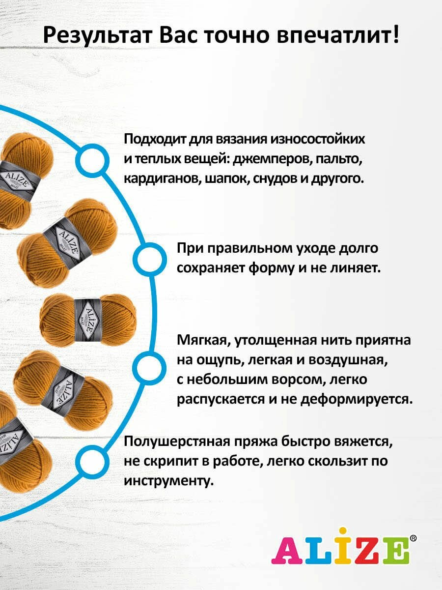 СохранитьПряжа ALIZE Superlana Maxi 02 шафран Ализе Суперлана Макси 5 мотков*100г*100м, шерсть 75%+акрил 25% 25% интересное: