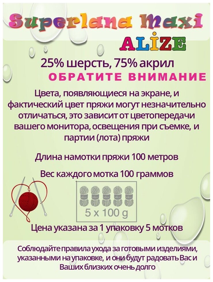 СохранитьПряжа ALIZE SUPERLANA MAXI, яр.зелень - 455, 25% шерсть, 75% акрил, 5 мотков, 100 г., 100 м. интересное: