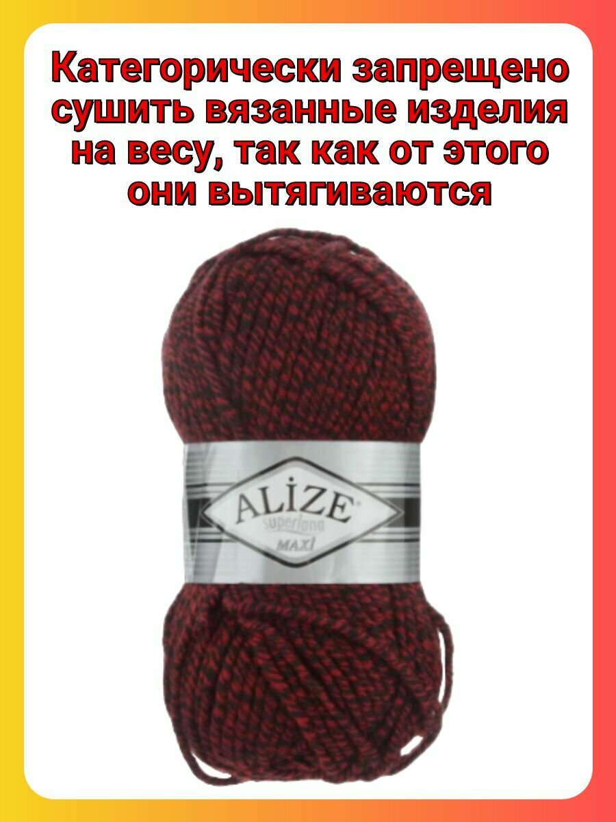 Пряжа для вязания ALIZE 'Superlana maxi', 100г, 100м (75% акрил, 25% шерсть), ТУ (57 бордо), 5 мотков