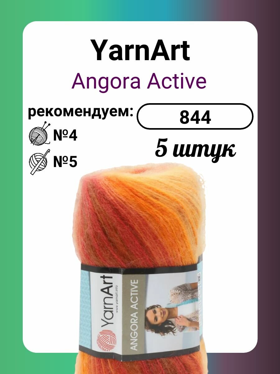 Пряжа для вязания YarnArt 'Angora Active', 100г, 500м (20% мохер, 80% акрил) (845 меланж), 5 мотков
