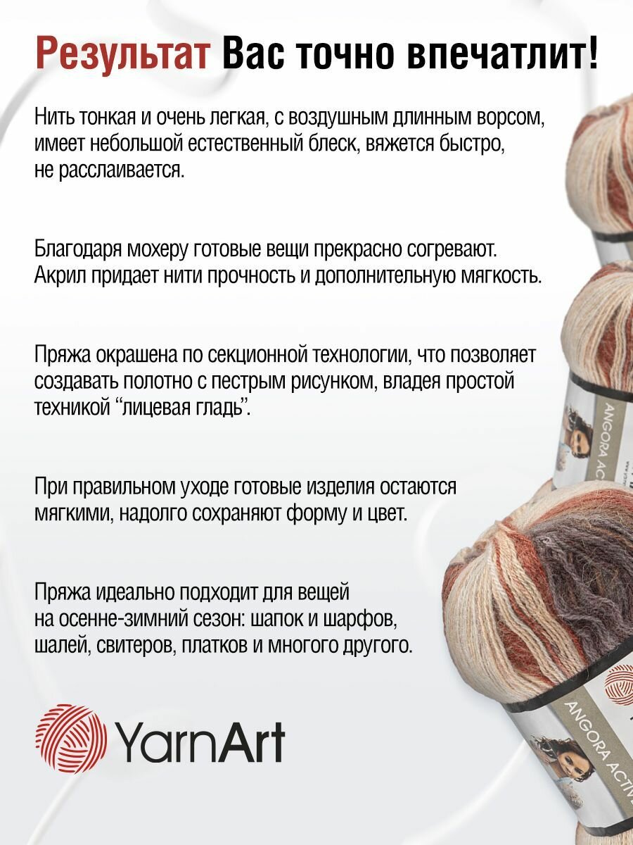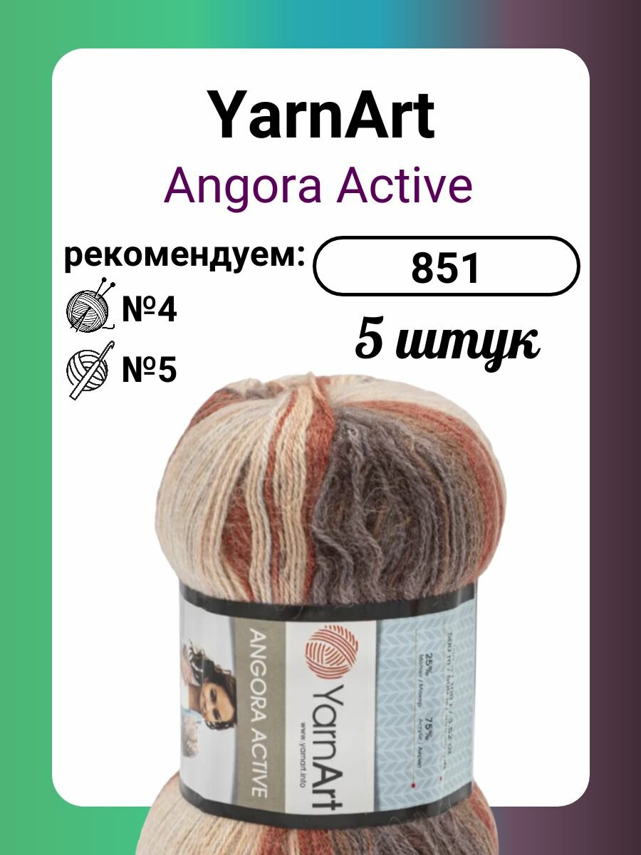 Пряжа YarnArt Angora Active тонкая полушерстяная 100 г 500 м 851 меланж 5 мотков интересное: