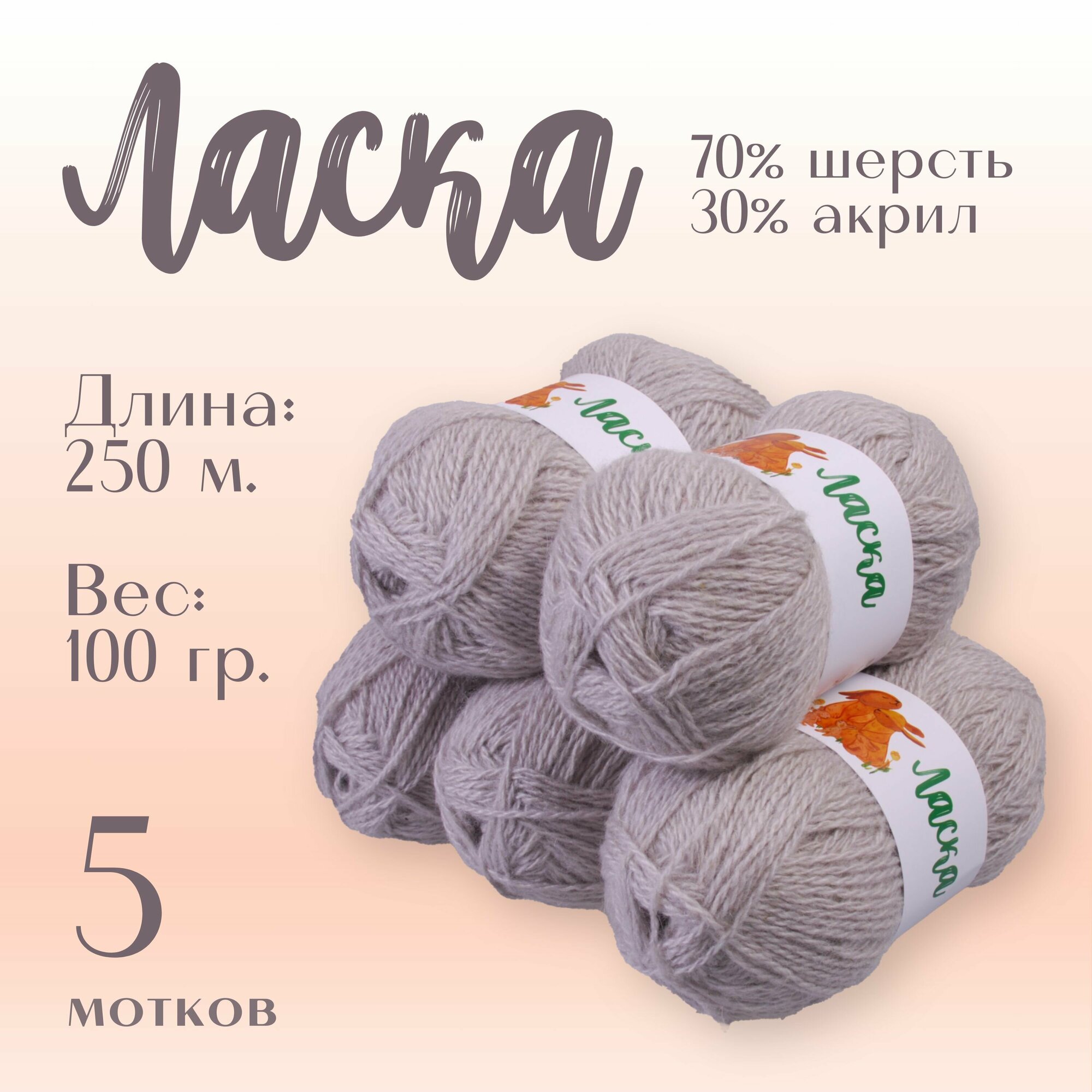 Пряжа для вязания Alpira "Ласка" шерсть 70% акрил 30% 5 мотков 100г/250м светло-серый