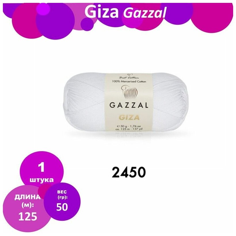 Пряжа Gazzal Giza белый (2450), 100%мерсеризованный хлопок, 125м, 50г, 5шт