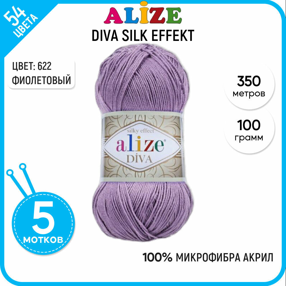 Купить Пряжа для вязания ALIZE 'Diva', 100г, 350м (100% микрофибра) ТУ (622 фиолетовый), 5 мотков