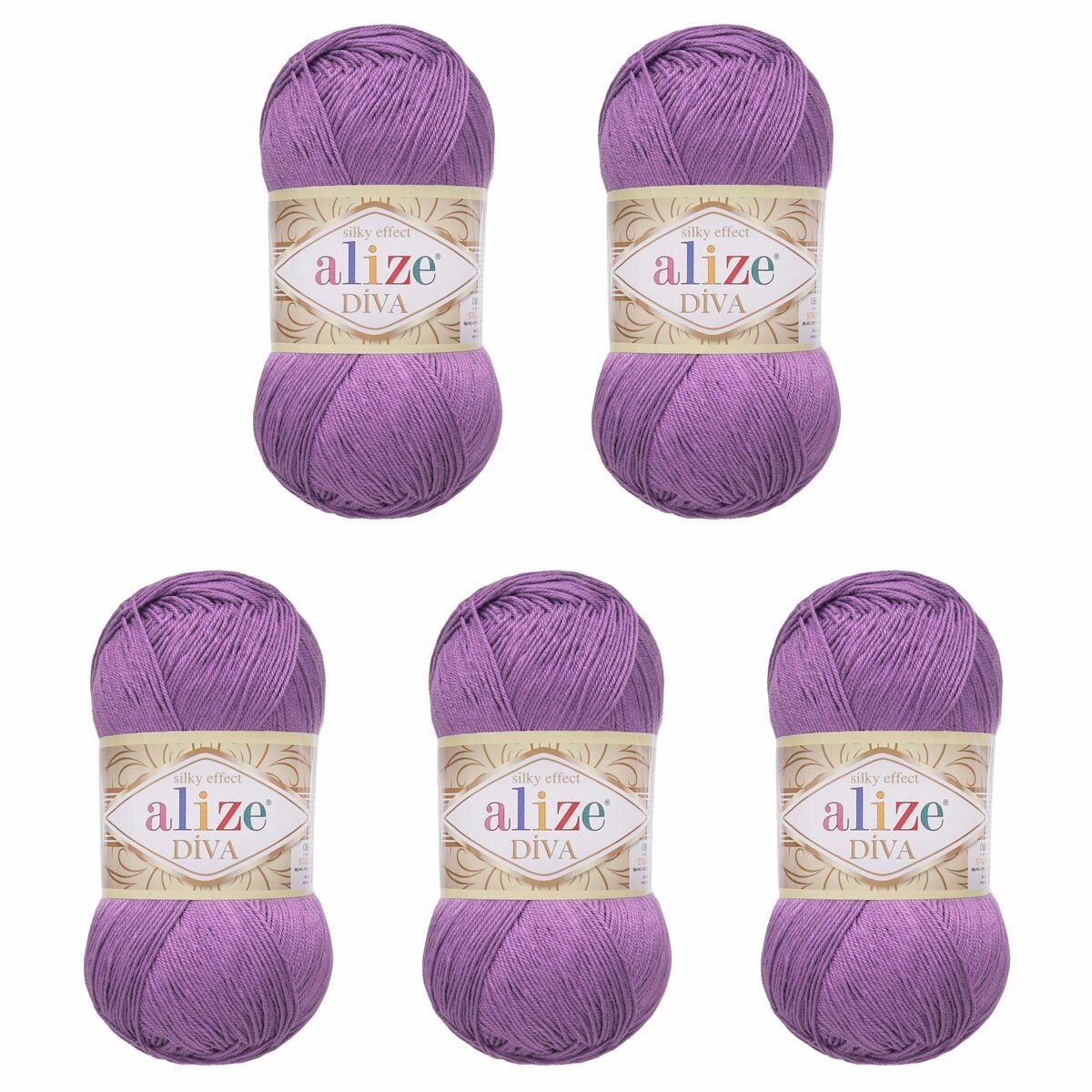 Пряжа для вязания Alize Diva 297 слива, 100 г, 350 м, 5 штук