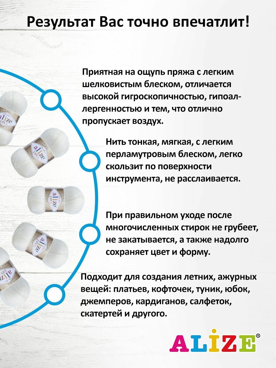 Пряжа для вязания ALIZE 'Diva', 100г, 350м (100% микрофибра) ТУ (55 белый), 5 мотков