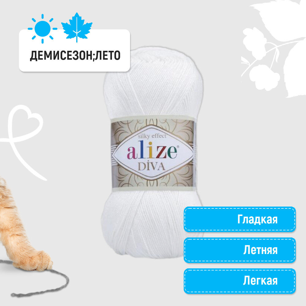 Пряжа Alize Diva белый (55), 100%микрофибра, 350м, 100г, 5шт