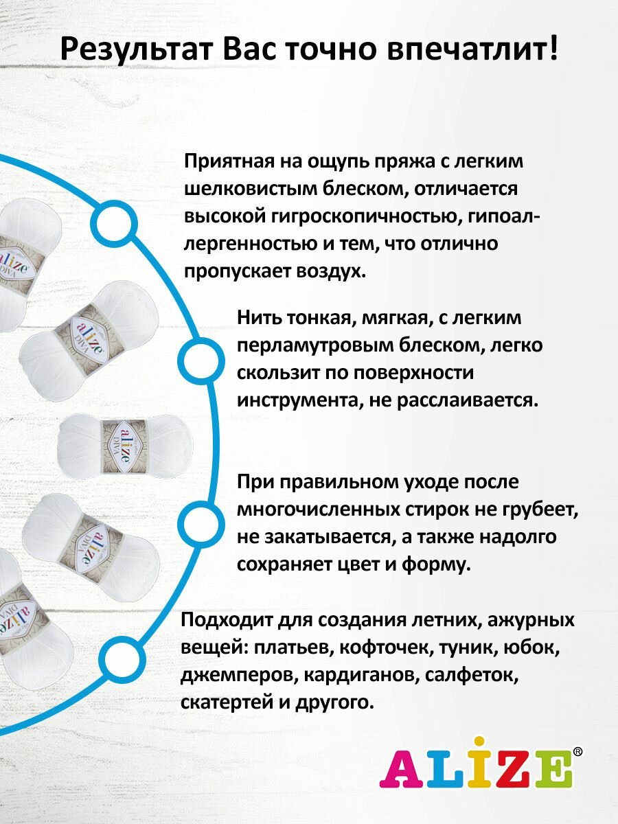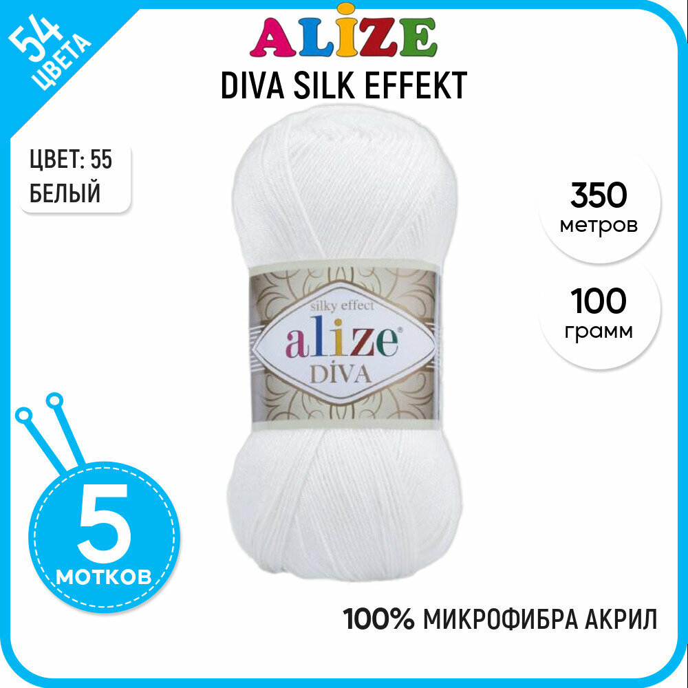 Купить Пряжа для вязания ALIZE 'Diva', 100г, 350м (100% микрофибра) ТУ (55 белый), 5 мотков
