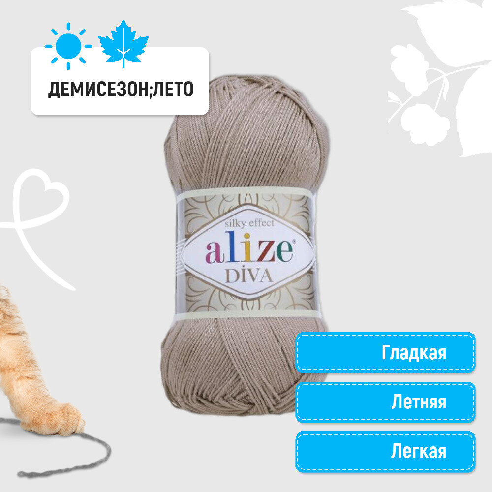Купить Пряжа Alize Diva бежевый (167), 100%микрофибра, 350м, 100г, 5шт