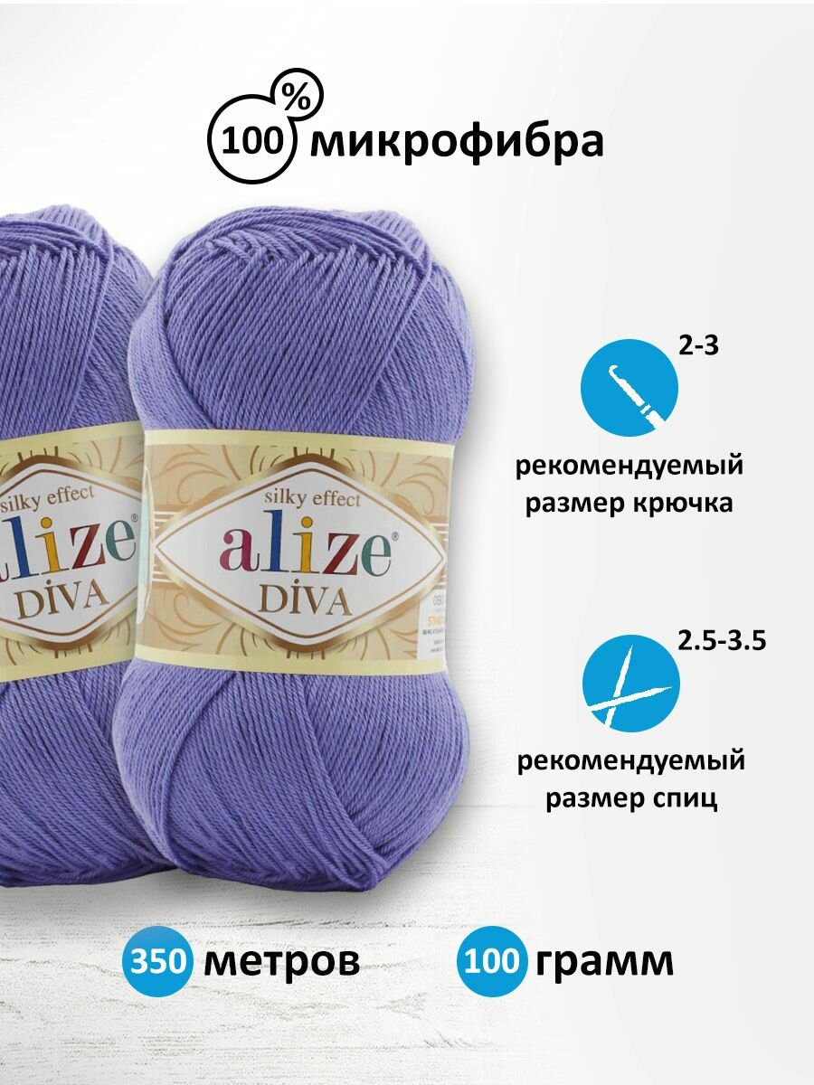 СохранитьПряжа для вязания Alize Diva 851 барвинок, 100 г, 350 м, 5 штук интересное: