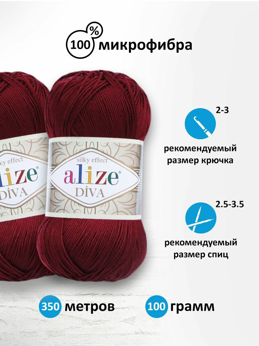 Пряжа ALIZE DIVA, бордовый - 57, 100% микрофибра акрил, 5 мотков, 100 г., 350 м.