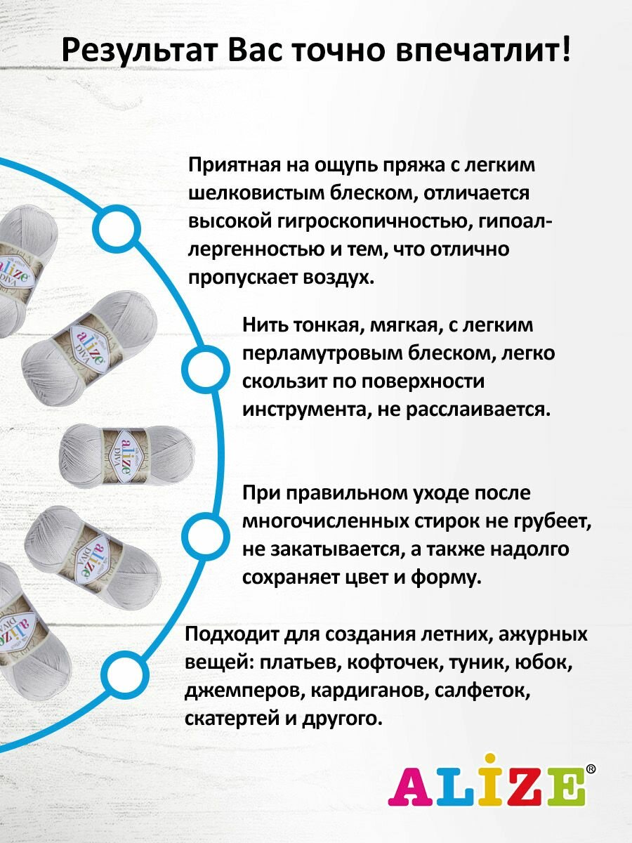 Ниже Вы можете прочитать отзывы на Пряжа для вязания ALIZE 'Diva', 100г, 350м (100% микрофибра) ТУ (168 морская ракушка), 5 мотков, ознакомится с подробными характеристиками, посмотреть интересные обзоры и фотографии на Пряжа для вязания ALIZE 'Diva', 100г, 350м (100% микрофибра) ТУ (168 морская ракушка), 5 мотков.