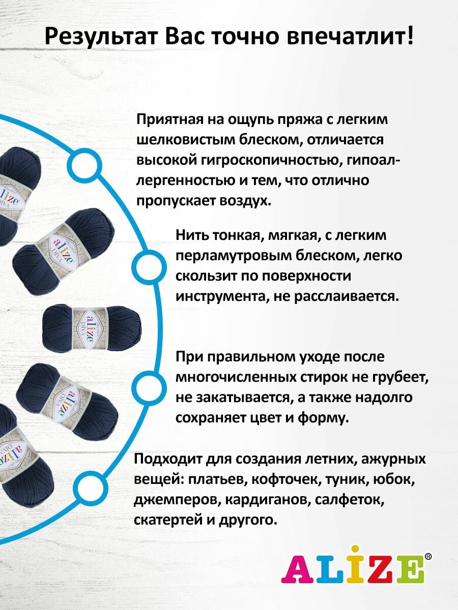 СохранитьПряжа Alize Diva темно-синий (361), 100%микрофибра, 350м, 100г, 5шт интересное: