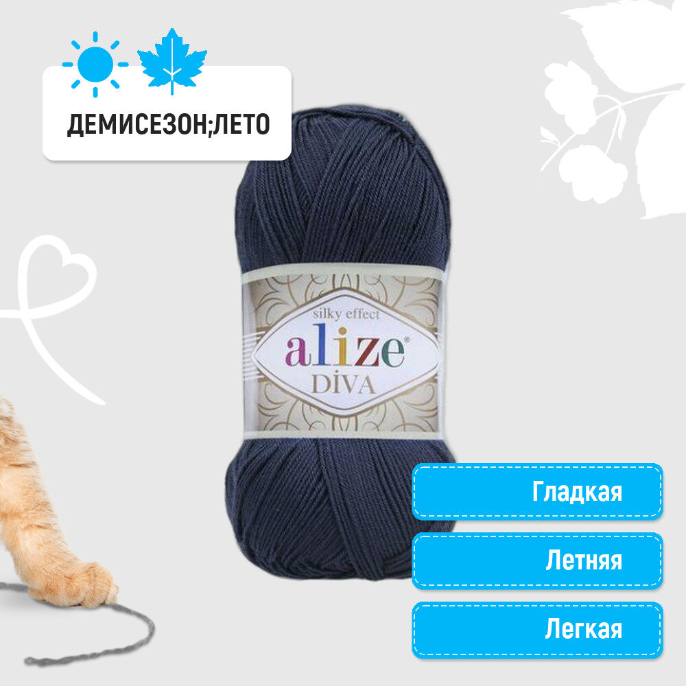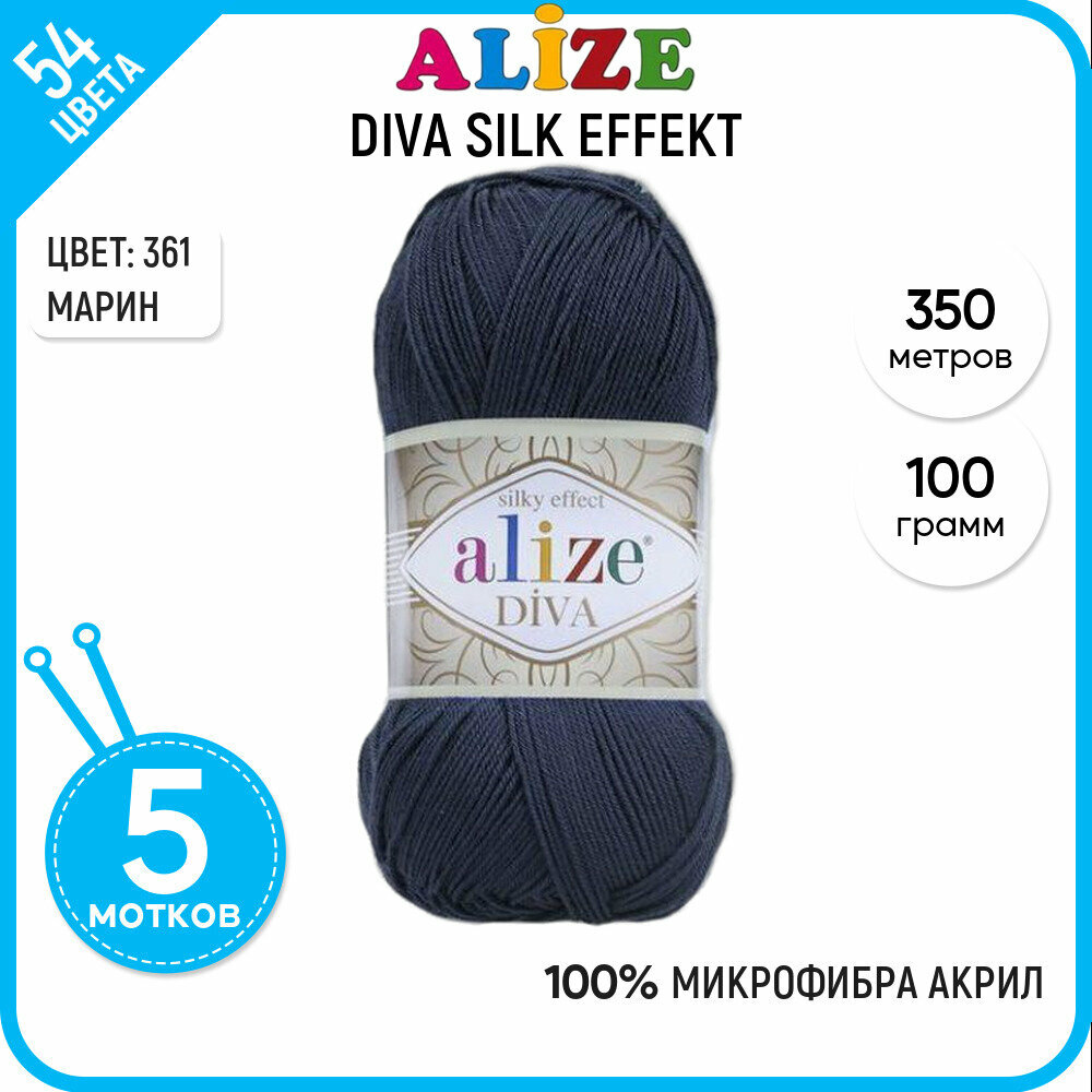 Купить Пряжа Alize Diva темно-синий (361), 100%микрофибра, 350м, 100г, 5шт