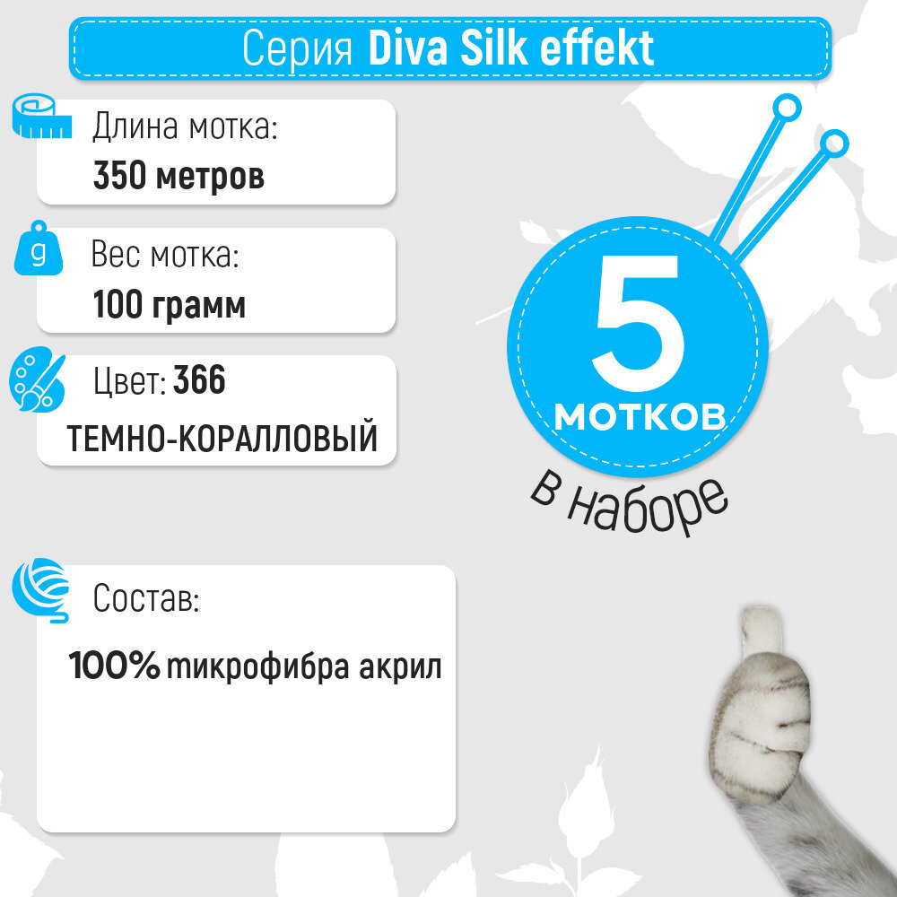 Пряжа "Diva", цвет: 619 - Коралл, 1 шт, Микрофибра 100%, 100 гр. 350 м.