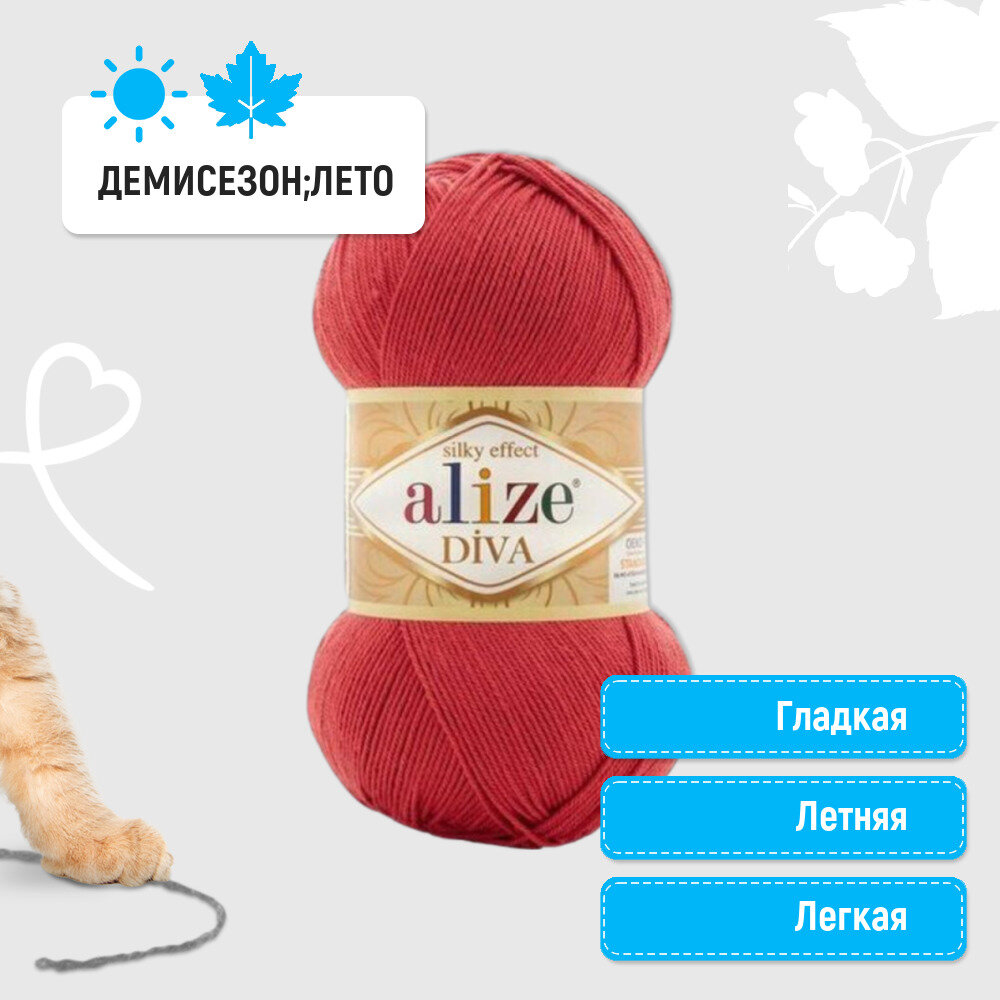 Пряжа для вязания ALIZE 'Diva', 100г, 350м (100% микрофибра) ТУ (36 терракот), 5 мотков