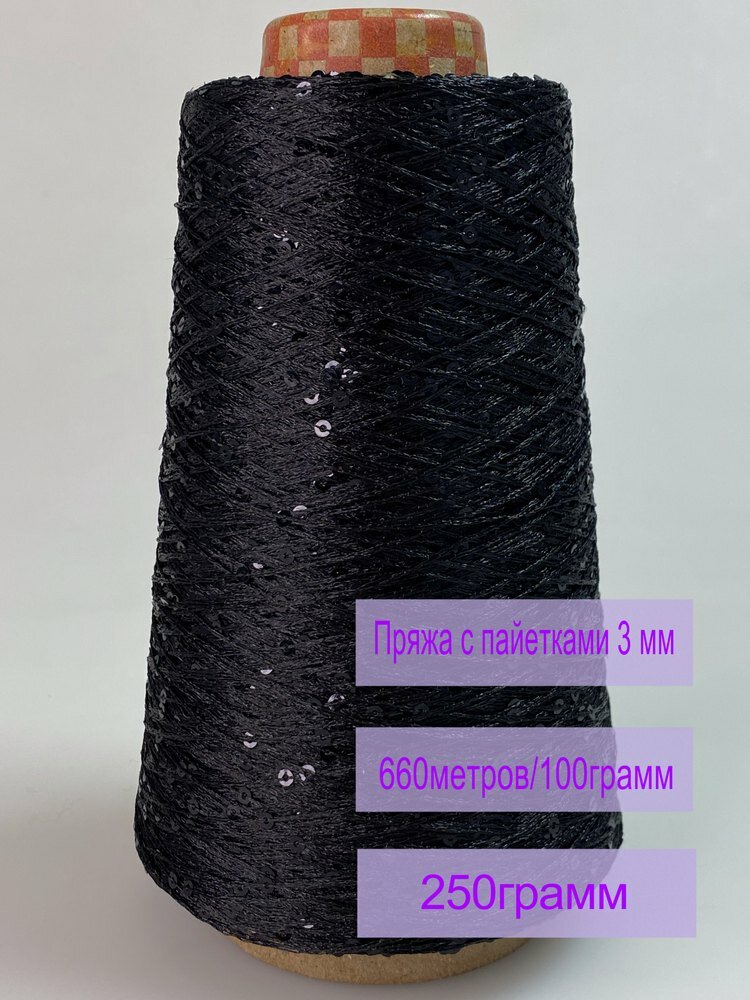 Пряжа для вязания с пайетками 3мм, 250 грамм , длина нити 660м/100гр , цвет черный интересное: