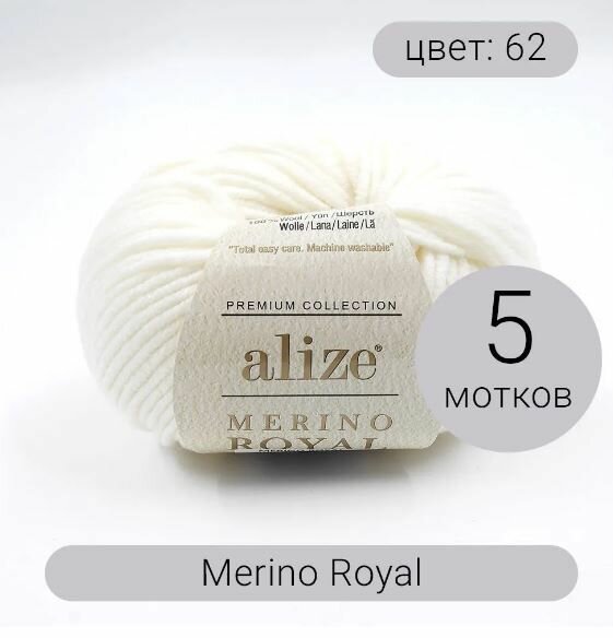 Купить Пряжа Alize Merino royal молочный (62), 100%шерсть, 100м, 50г, 5шт