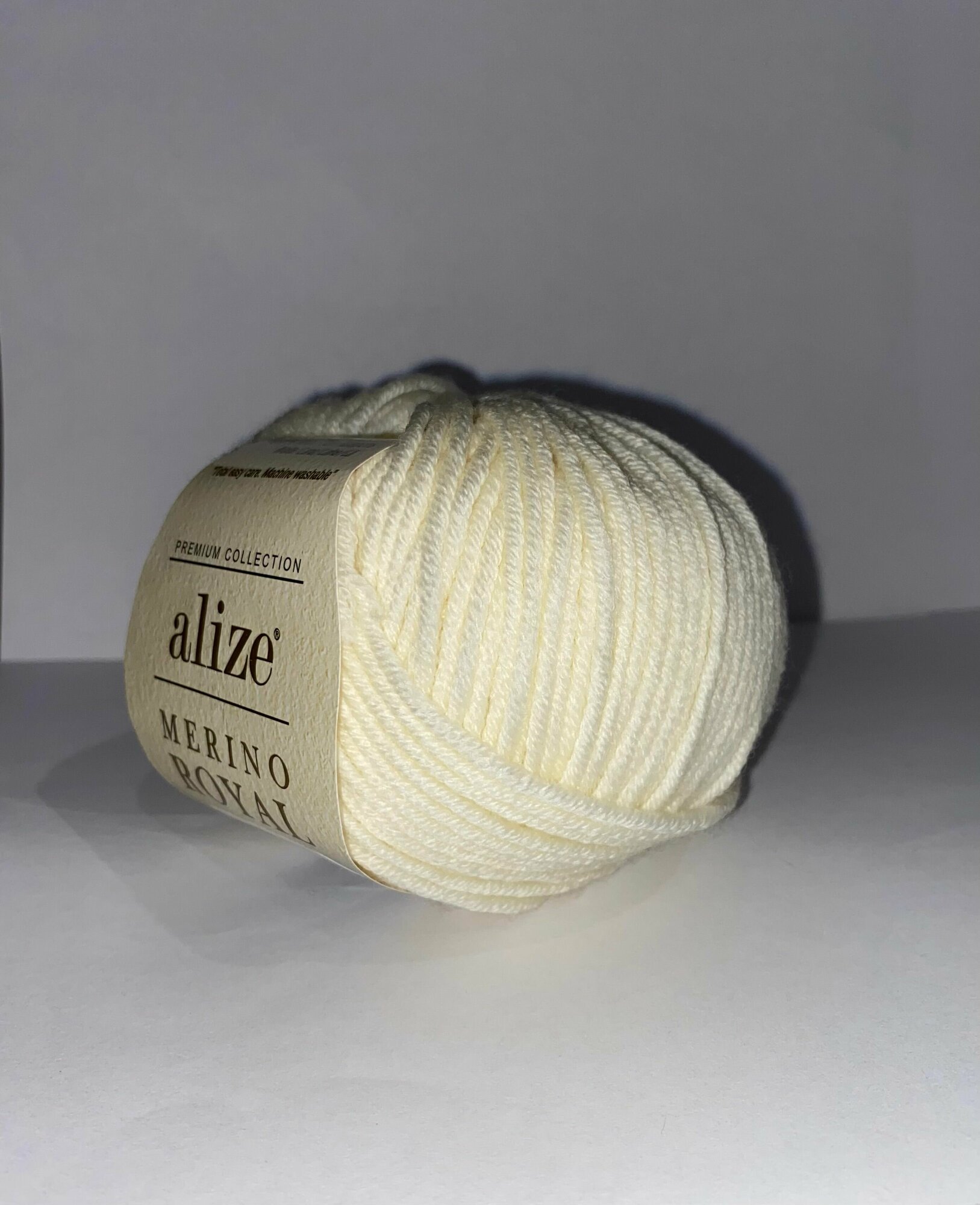 Мериносовая пряжа для вязания Alize Merino Royal, цвет 62 молочный, моток 50г, 100м, 10 мотков/упак