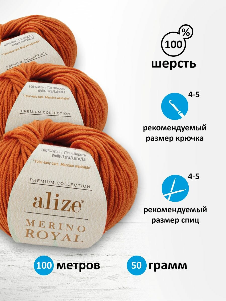 Пряжа для вязания Alize Merino royal (89) терракот, 50 г, 100 м, 10 штук