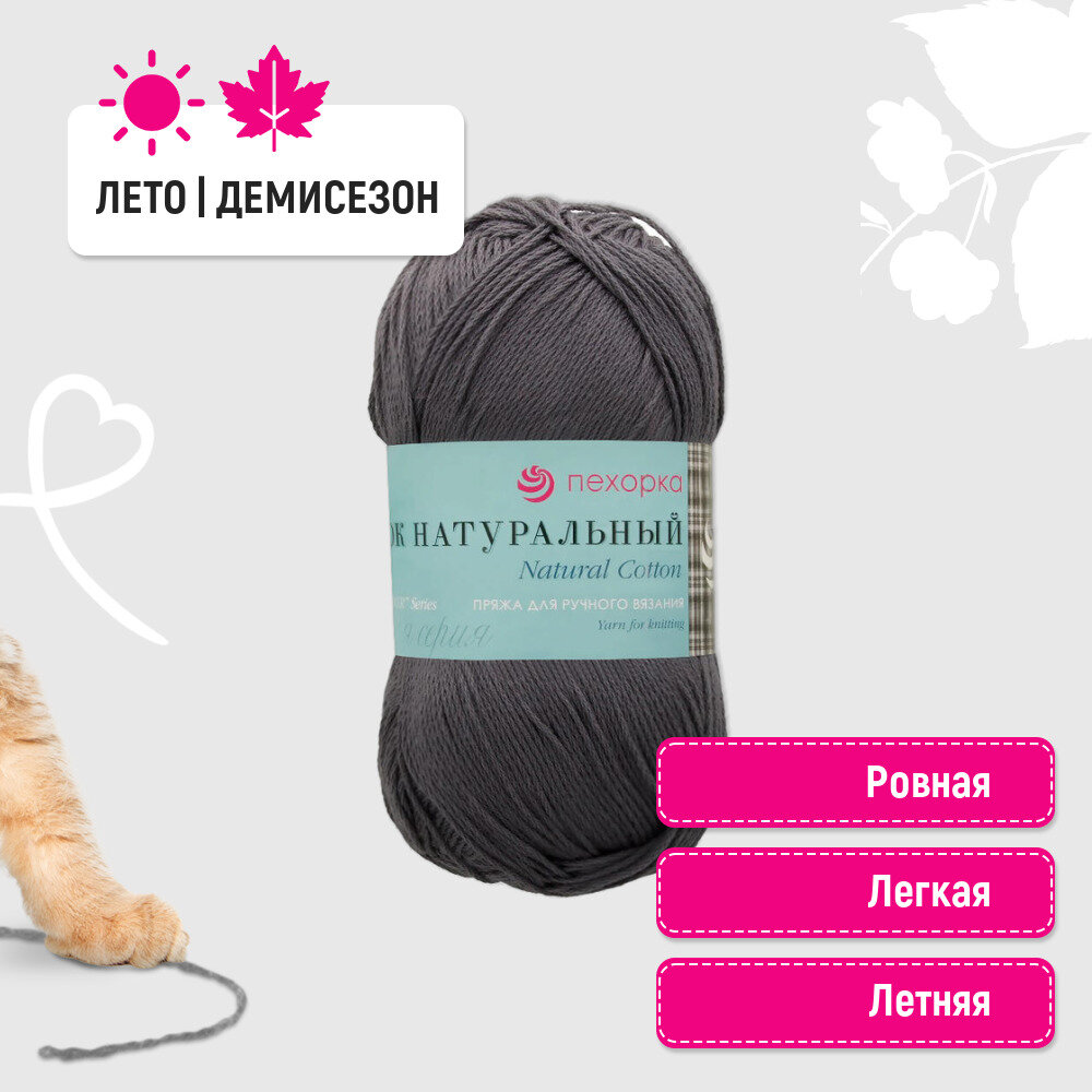 Пряжа Пехорка Хлопок натуральный мышонок (059), 100%хлопок, 425м, 100г, 1шт