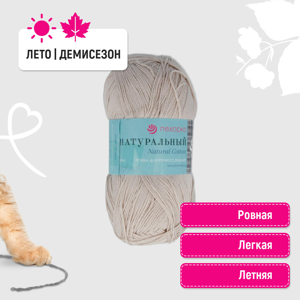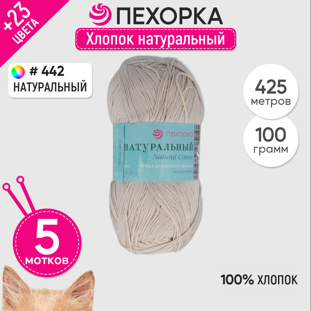 СохранитьПряжа Пехорка Хлопок натуральный натуральный (442), 100%хлопок, 425м, 100г, 5шт интересное: