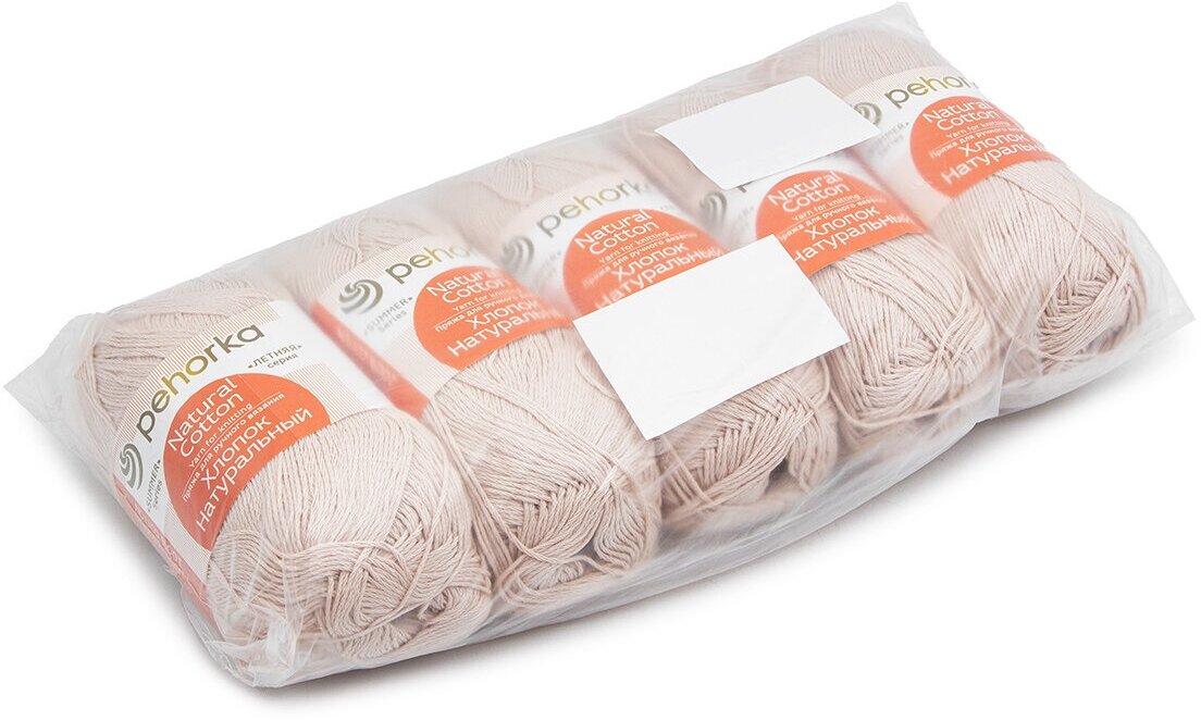 Пряжа Пехорка Хлопок Натуральный- 5 мотков 442 натуральный 100% хлопок 425м/100г