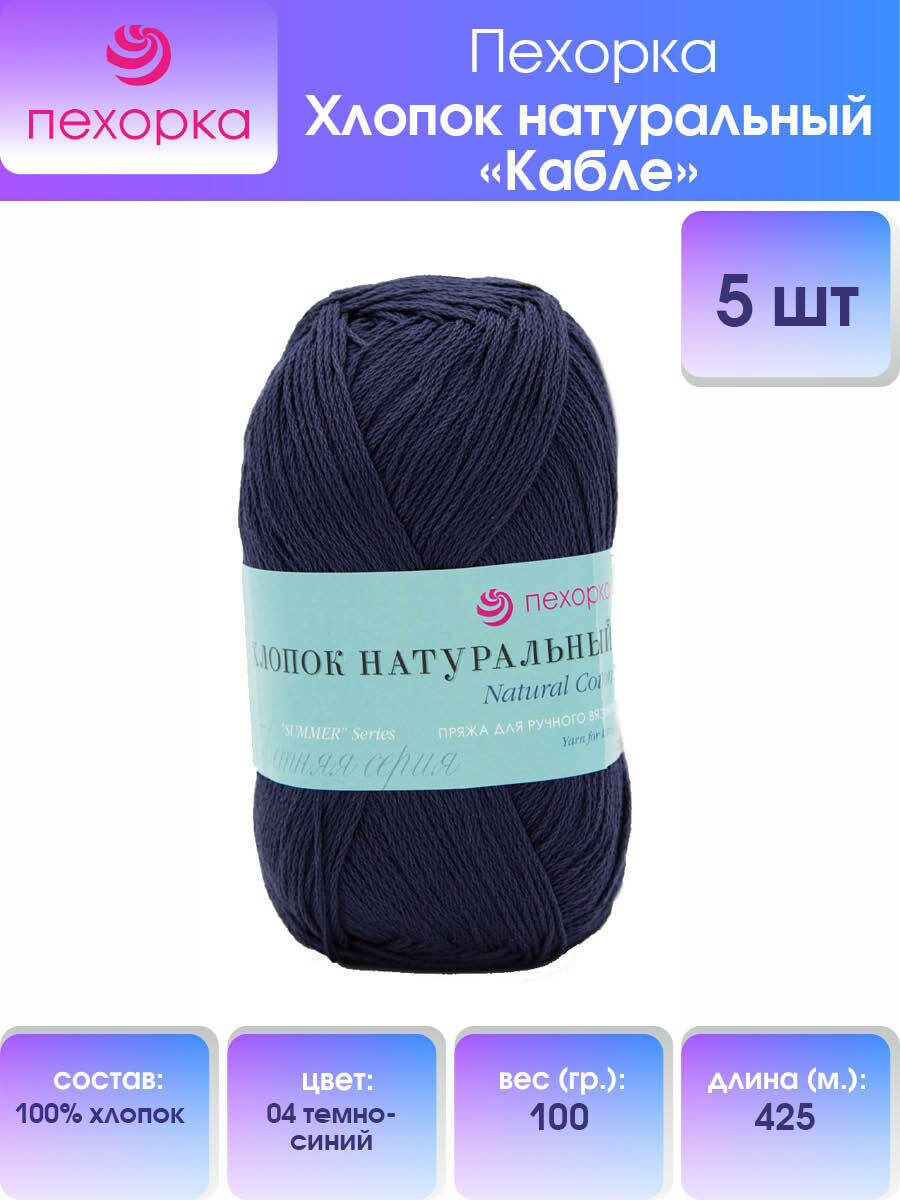 СохранитьПряжа 5 шт Пехорка "Хлопок натуральный Кабле" темно-синий (04) интересное: