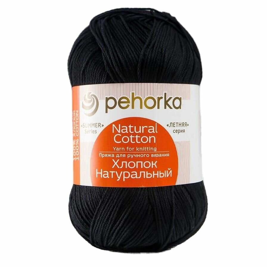 Пряжа Пехорка Хлопок натуральный чёрный (002), 100%хлопок, 425м, 100г, 1шт