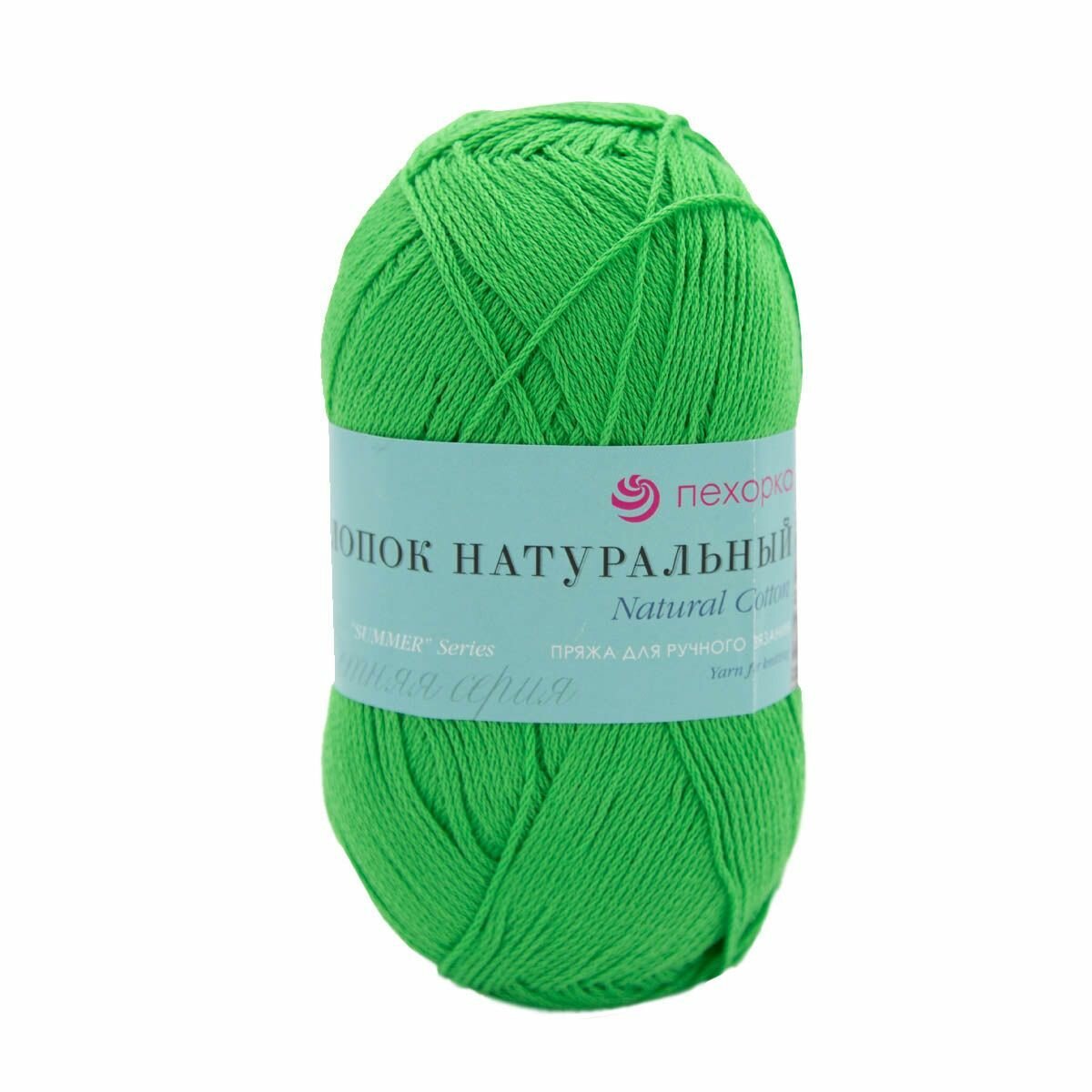 Пряжа Пехорка Хлопок Натуральный- 5 мотков 41 салатовый 100% хлопок 425м/100г
