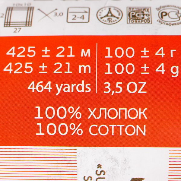 Пряжа Пехорка Хлопок Натуральный, 100 % хлопок, 100 г, 425 м, 1 шт, 256