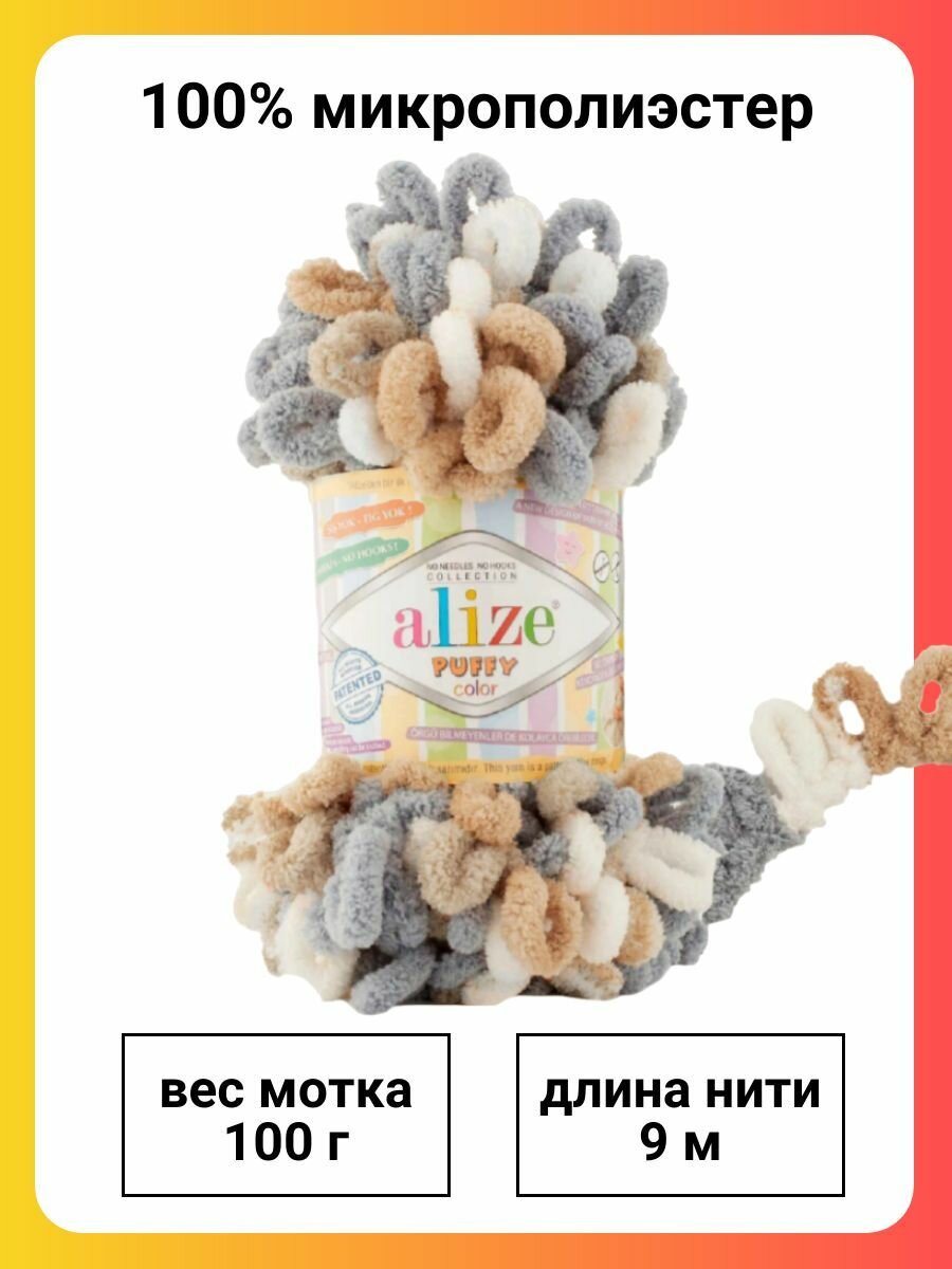 Купить Пряжа для вязания ALIZE 'Puffy Color', 100г, 9м (100% микрополиэстер) (6395 секционный), 5 мотков