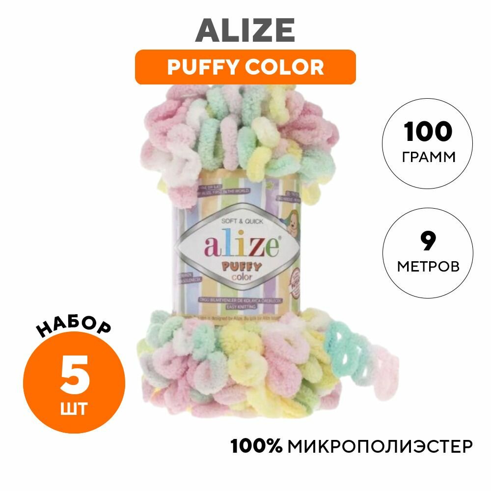 Пряжа ALIZE "Puffy Color", 100 г 9 м, 100% микрополиэстер, 6490 секционный, 5 шт