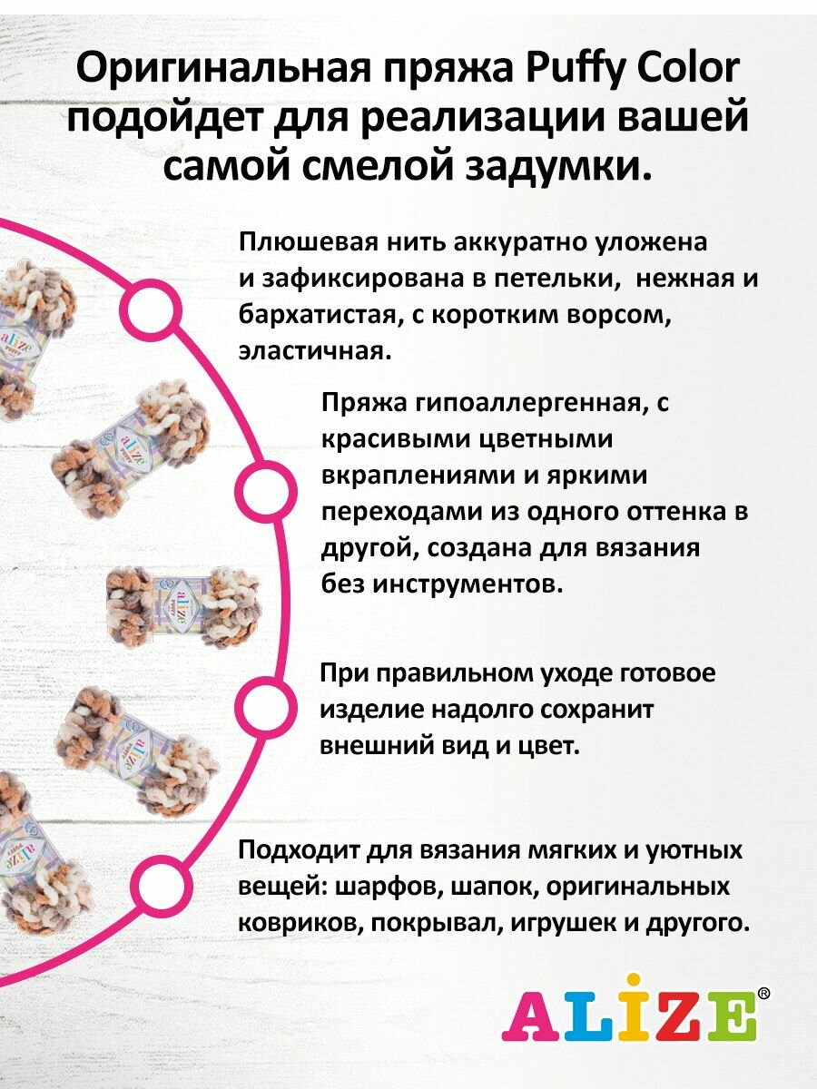 Пряжа для вязания плюшевая Alize Puffy Color, цвет 6461, 100г, 9м, 5 шт/упак