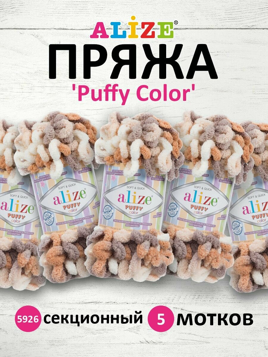Пряжа PUFFY COLOR (Alize), песочный принт - 5926, 100% микрополиэстер, 5 мотков, 100 г, 9 м.