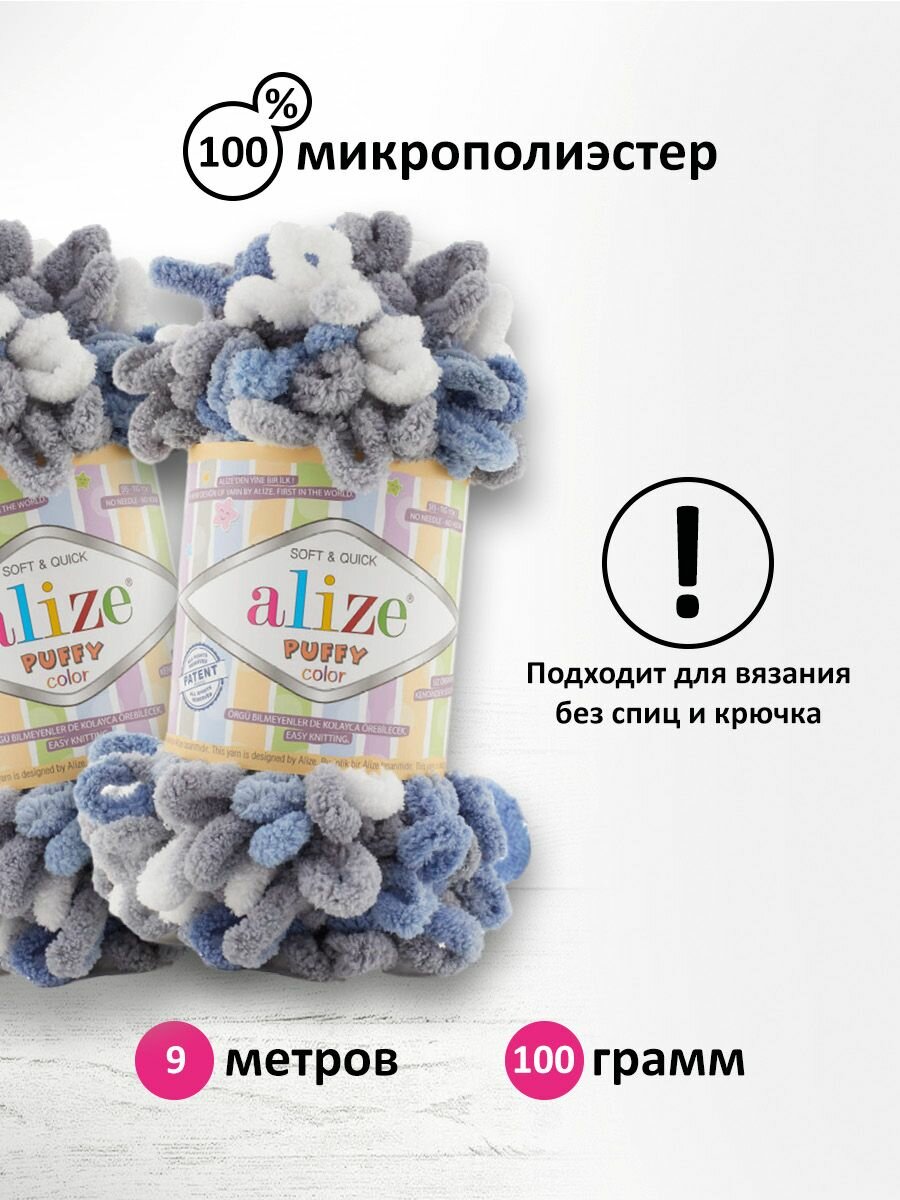 Пряжа Puffy Color Alize (5926), 100г, 9м, 100% микрополиэстер (2 шт.)