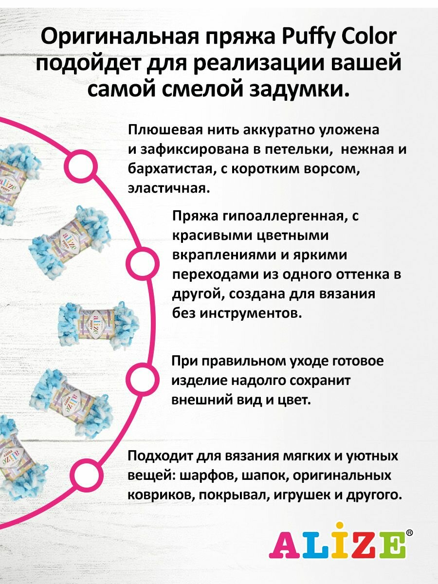 Пряжа для вязания плюшевая с петельками Alize Puffy Color, цвет 6471, 100г, 9м, 5 шт/упак