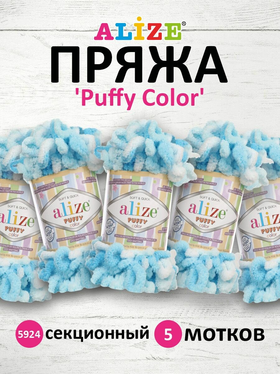 Пряжа PUFFY COLOR (Alize), бело-голубой - 5865, 100% микрополиэстер, 5 мотков, 100 г, 9 м.