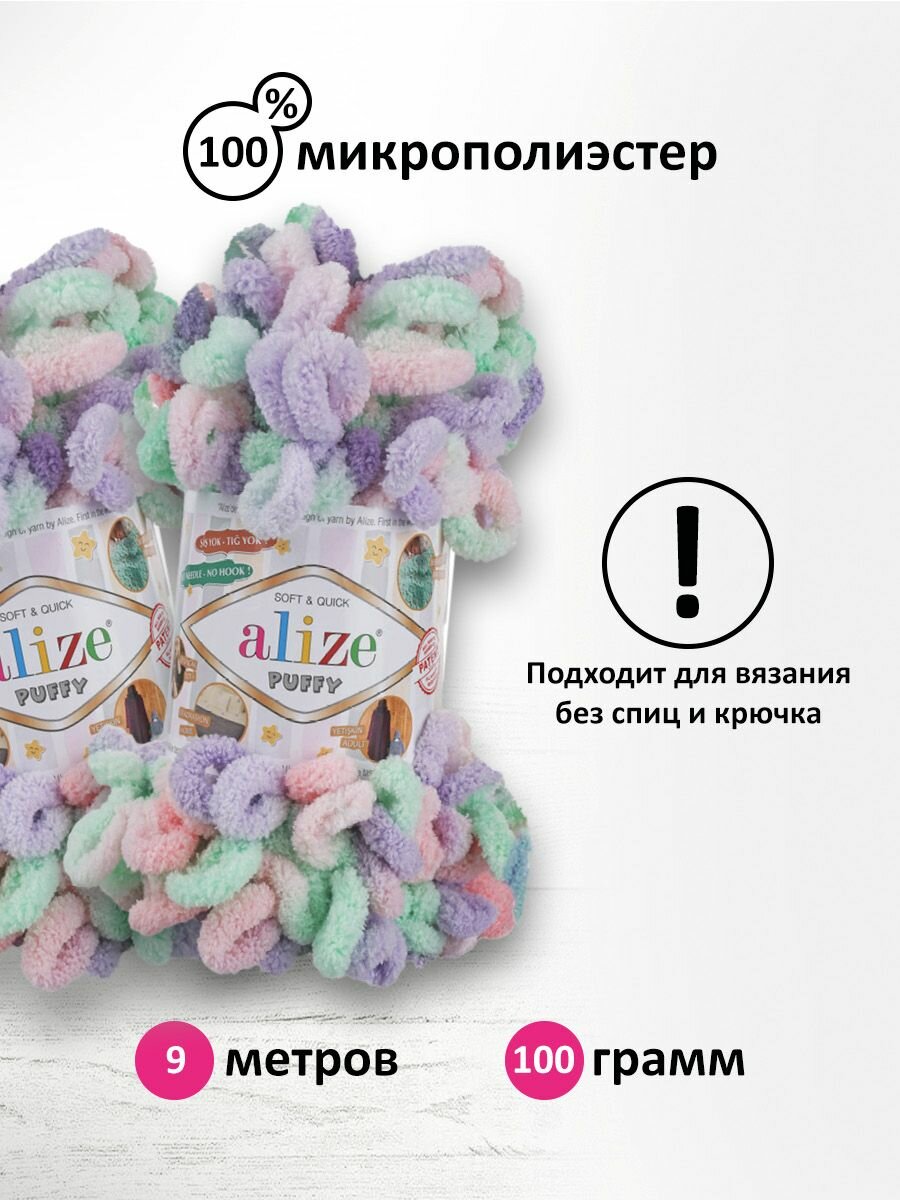 Пряжа Puffy Color Alize (5926), 100г, 9м, 100% микрополиэстер (2 шт.)