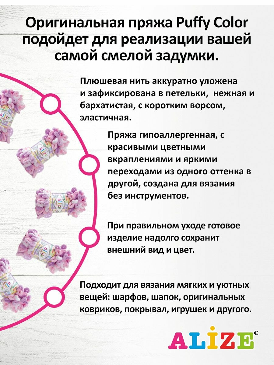 Пряжа PUFFY COLOR (Alize), сирен/розовый - 6305, 100% микрополиэстер, 5 мотков, 100 г, 9 м.
