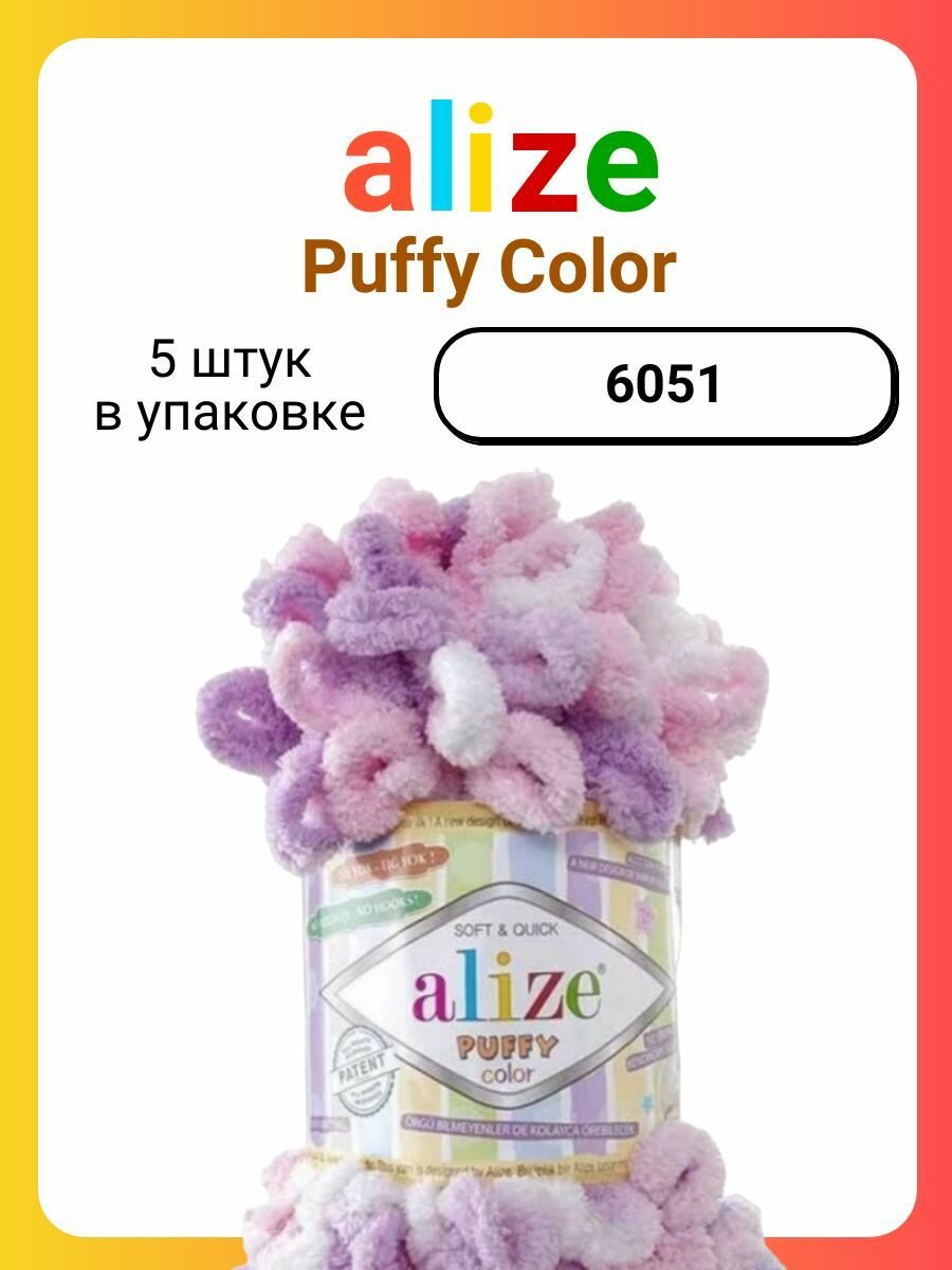 Пряжа ALIZE "Puffy Color", 100 г 9 м, 100% микрополиэстер, 6461 секционный, 5 шт