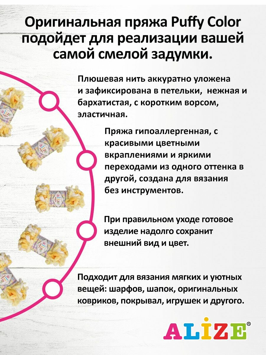 СохранитьПряжа PUFFY COLOR (Alize), канарейка принт - 5921, 100% микрополиэстер, 5 мотков, 100 г., 9 м. интересное:
