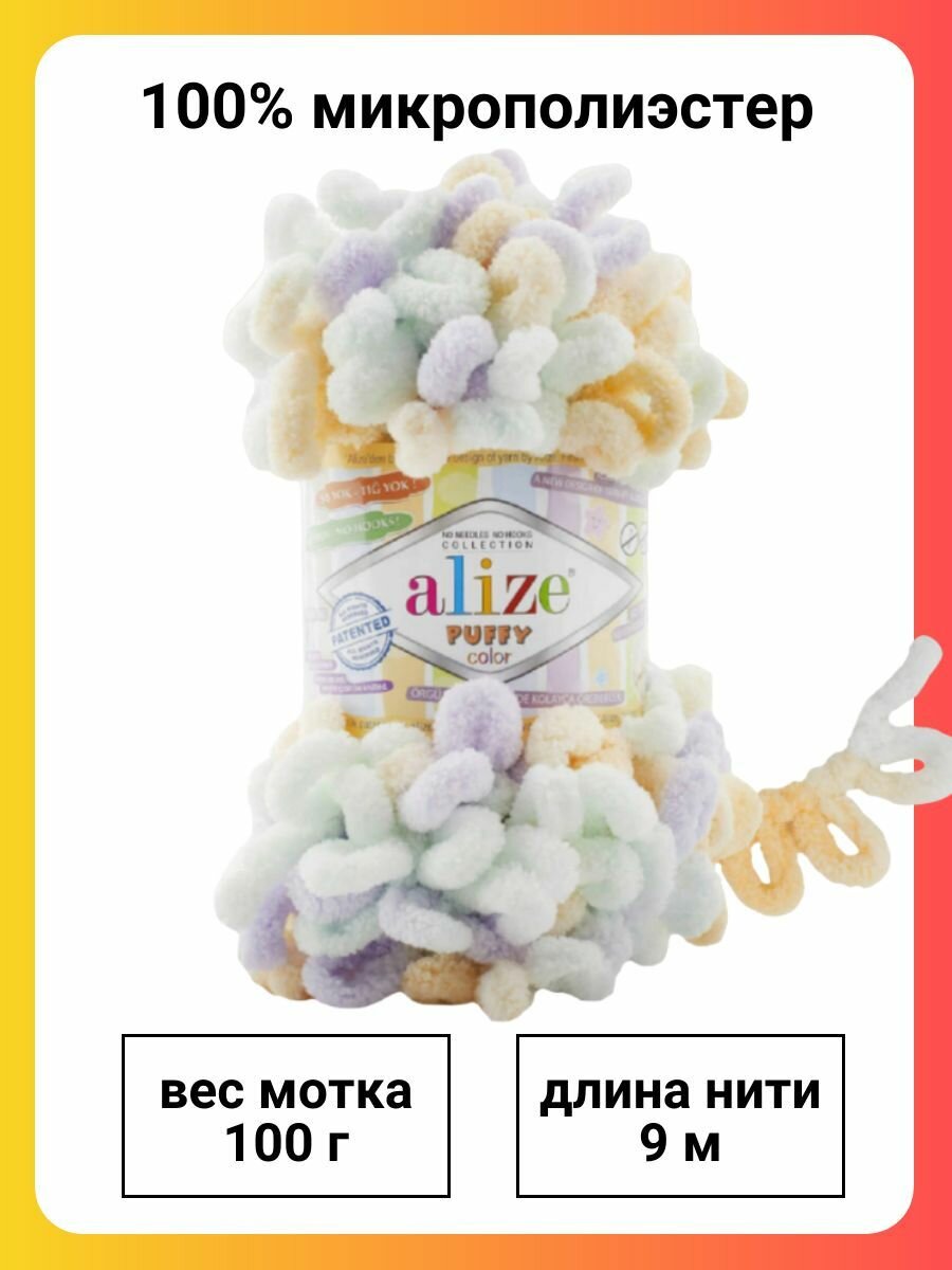 Пряжа ALIZE "Puffy Color", 100 г 9 м, 100% микрополиэстер, 6490 секционный, 5 шт