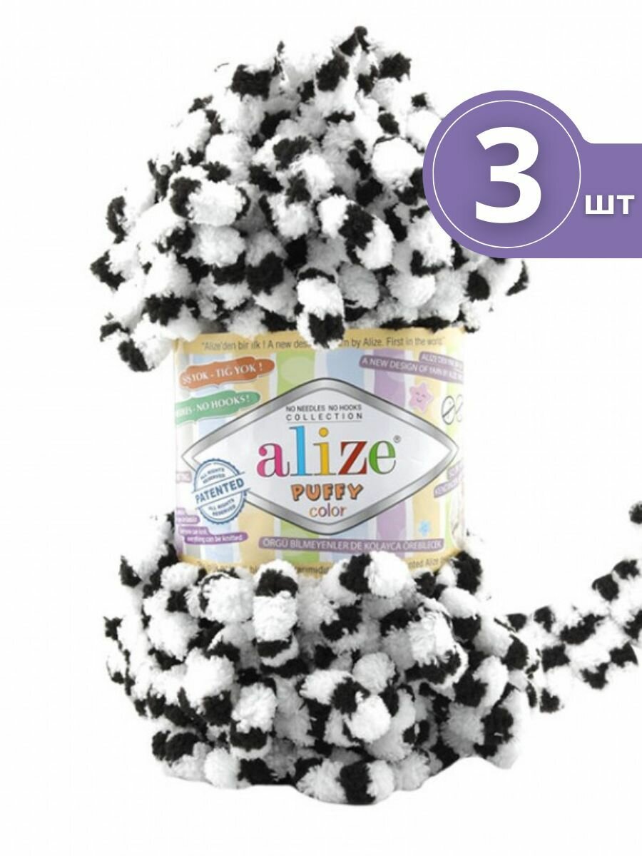Купить Пряжа Alize Puffy color белый-черный (6451), 100%микрополиэстер, 9м, 100г, 3шт