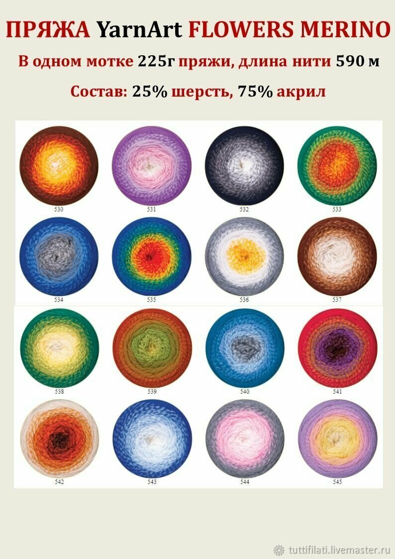 СохранитьПряжа для вязания ЯрнАрт Фловерс Мерино (YarnArt Flowers Merino) цвет 530, 225г/590м, комплект 1 моток интересное: