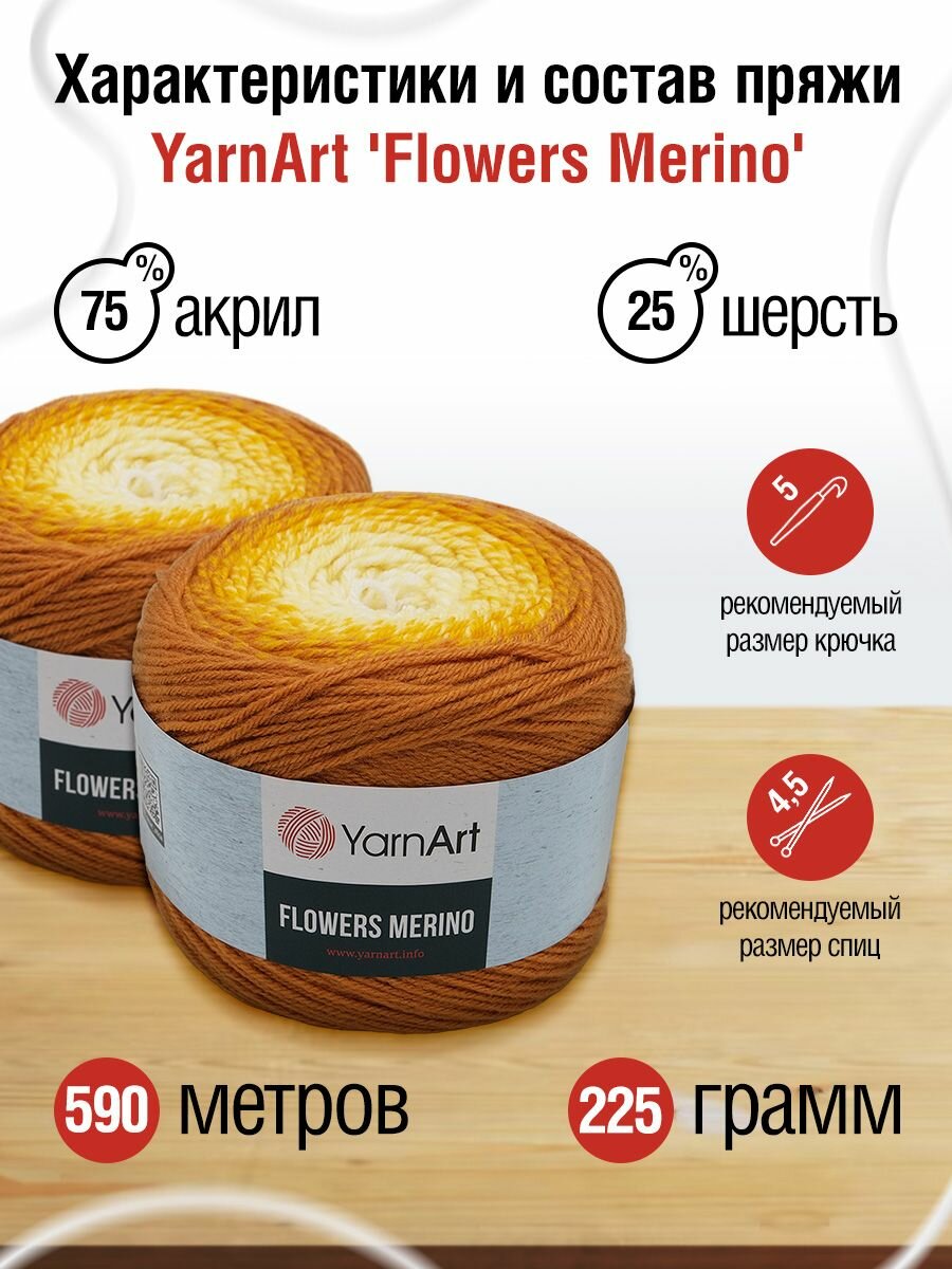 Пряжа для вязания YarnArt 'Flowers Merino' 225г, 590м (25% шерсть, 75% акрил) (542 секционный), 2 мотка