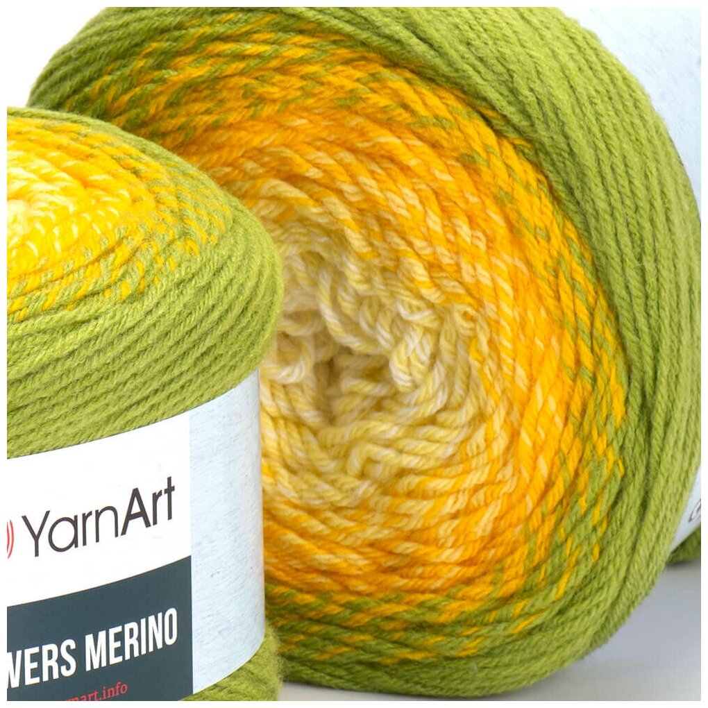 Пряжа Yarnart Flowers Merino зеленый-желтый (538), 25%шерсть/75%акрил, 590м, 225г, 5шт