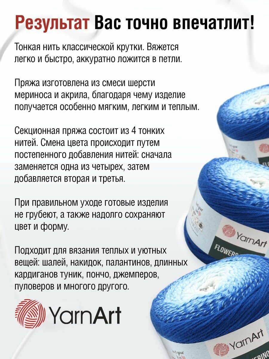 Пряжа для вязания YarnArt 'Flowers Merino' 225гр 590м (25% шерсть, 75% акрил) (550 секционный), 2 мотка